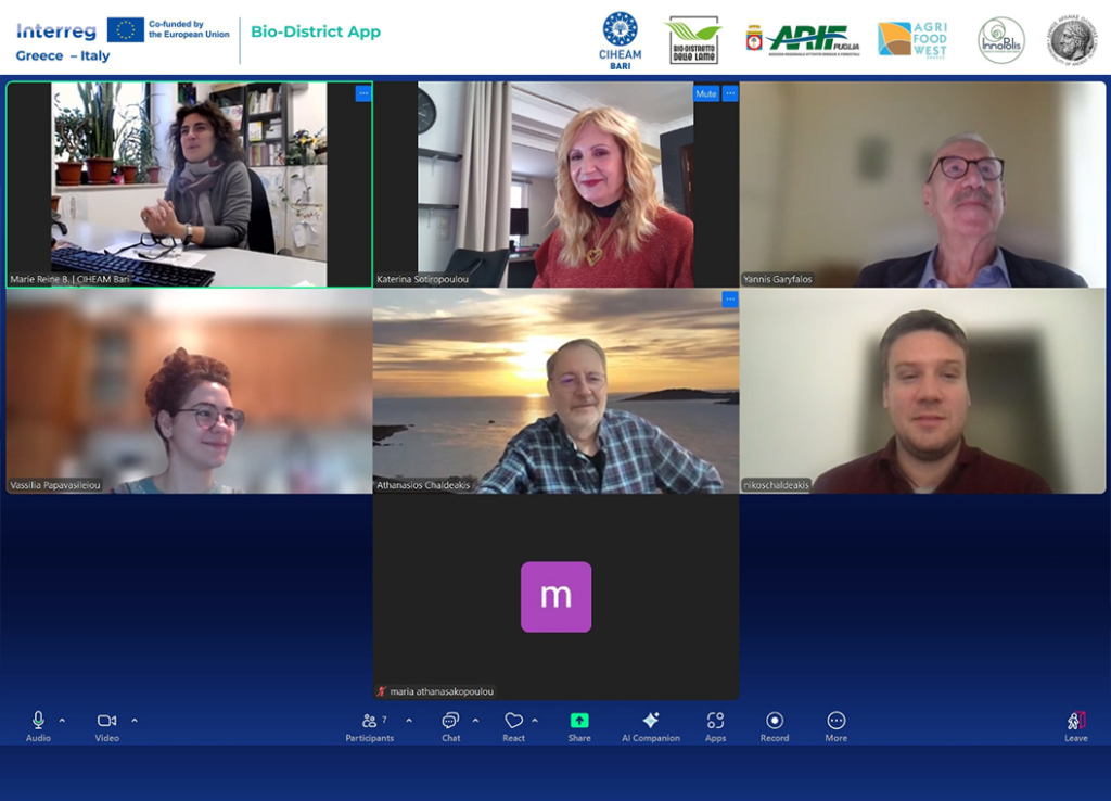 The Greek partners of the BIO-DISTRICT APP project convened for a highly productive online coordination meeting, reaffirming their shared commitment to successfully advancing the project’s objectives and ensuring the effective implementation of upcoming activities.